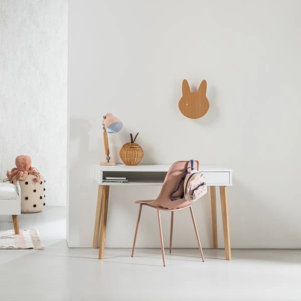 De BLN Kids Sacha Bureau White / Natural heeft een Scandinavische look wat uniek oogt. Het bureau beschikt over schuine beuken poten. Het bureau beschikt over een opbergvak met daarnaast een opberglade. Het bureau is gemaakt van kwalitatief MDF wat is gecombineerd met beuken.