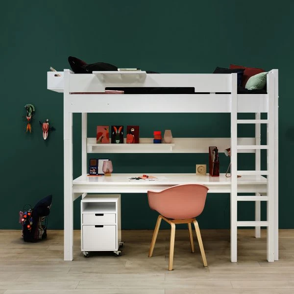 De Combiflex Hoogslaper XL beschikt over een rechte trap. Deze trap kan zowel aan de linkerzijde als aan de rechterzijde geplaatst worden. De uitsparingen aan de zijkant van de trap zijn handig om aan vast te pakken zodat je kind niet gauw van de ladder valt. Hoogslaper XL is hoger dan de standaard hoogslaper en beschikt dus ook over een hogere trap. De hoogslaper wordt geleverd met plastic afdekdopjes om de zichtbare schroeven te verbergen. Onder het bed kan eventueel een klein kastje neergezet worden.