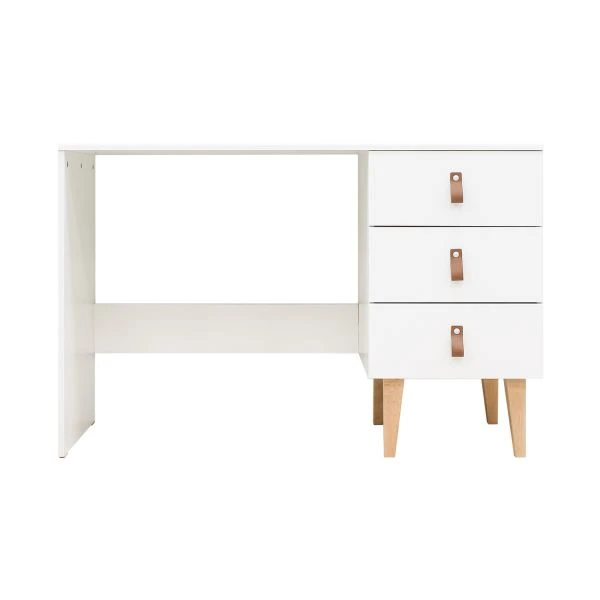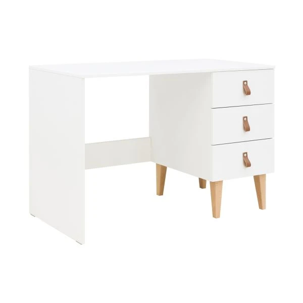 Het Bopita Indy Bureau Wit / Naturel is een kwalitatief MDF bureau die voorzien is van een kastje aan de rechterzijde. Dit kastje beschikt over drie laden met softclosing. Onder dit kastje bevinden er vier beuken houten poten die kenmerkend zijn voor de Indy serie. Aan ieder front zit een lederen handgreep waardoor het schuiven van de lade gemakkelijk gaat. Dit bureau is afgelakt met een milieu- en kindvriendelijke lak. Een meubel wat zeer praktisch is in de kinderkamer.