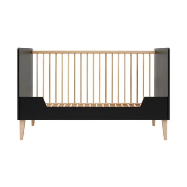 De Bopita Lena Bedbank Mat Zwart / Naturel 70 x 140 is gemaakt van hoogwaardig materiaal. Verder is de bedbank van dit babybed met spijlen om te bouwen naar een peuter bedbank zodat je kindje zelf in en uit kan stappen. Daarnaast is de bedbank afgewerkt in een combinatie van zwart en naturel gelakt beukenhout. De bedbodem van het spijlenbed is verstelbaar in hoogte. Ook wordt de bedbodem, spijlenrek en lage zijde voor de bedbank meegeleverd. De stijlvolle bedbank is perfect te combineren met andere producten van het merk bopita.