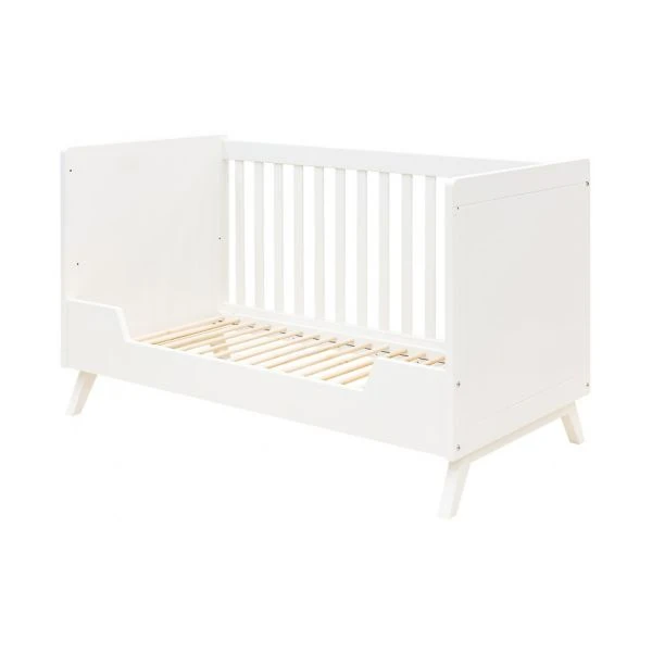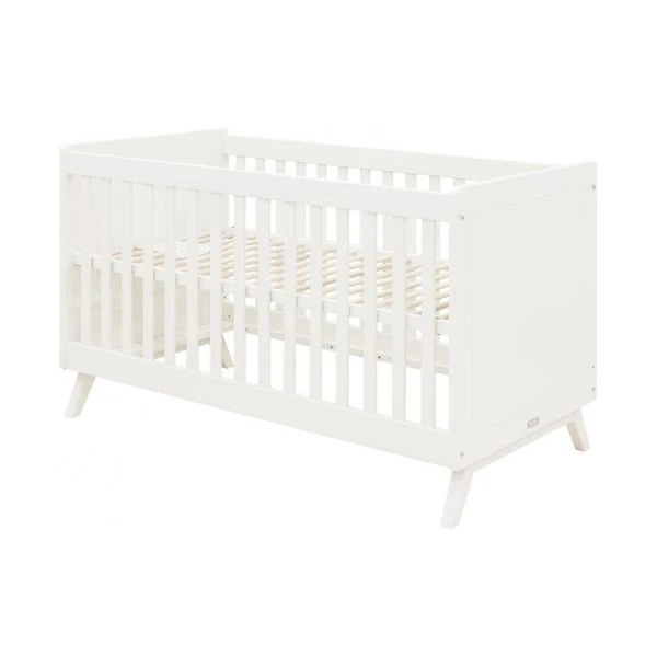 Het Bopita Retro Babybed Wit 70 x 140 cm is een kwalitatief babybed wat aan de zijkanten voorzien is van platte spijlen. En onderaan bevinden er schuine poten waardoor het een Scandinavische look krijgt. De bodem van dit bed is verstelbaar waardoor het extra veilig is. Van dit babybed kan ook een bedbank gemaakt worden zodat het met het kind meegroeit. Uiteraard voldoet dit meubel aan de Europese Veiligheidsnorm. Het is gemaakt van kwalitatief MDF en afgewerkt met een kindvriendelijke lak.