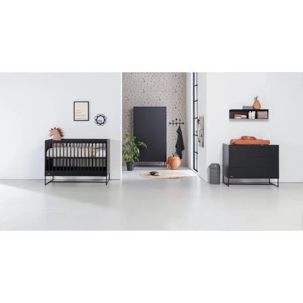 *De prijs is van combinatie Babybed Mat Zwart – Zwart – 60 x 120 + Commode 1D / 2L Mat Zwart – Zwart – Mat Zwart