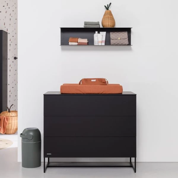 De commode is verkrijgbaar in drie varianten. Zo kun je kiezen voor een commode met drie lades, een commode met twee lades en één deur of een ‘zwevende’ commode. Met behulp van het meegeleverde hangbeslag kun je deze commode eenvoudig aan de muur bevestigen. Verder kun je zelf het blad van de commode en de kledingkast kiezen. Het bovenblad van babykamer Modular is verkrijgbaar in wit, zwart, wit marmer of zwart marmer bovenblad. Wil je echt iets unieks, dan is wit of zwart marmer echt een aanrader. Naast de standaard bovenbladen zijn er in de kleuren mat zwart en mat wit ook extra grote bovenbladen voor de commode verkrijgbaar.