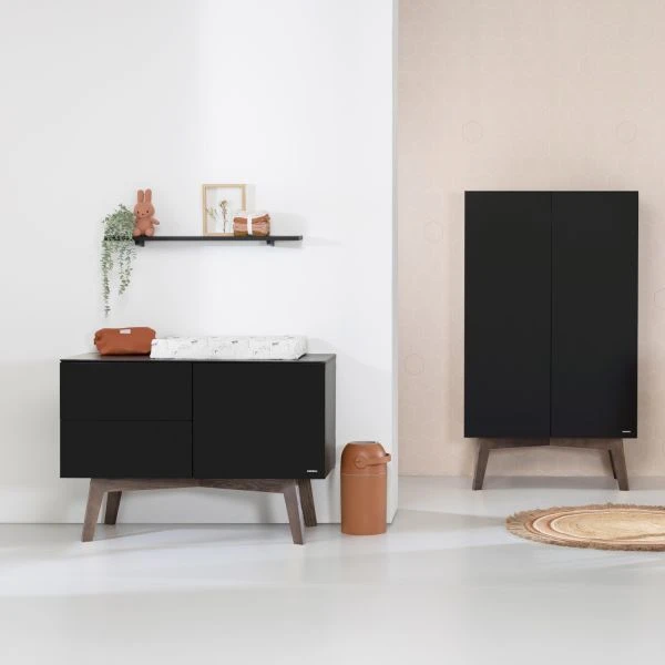 Kidsmill Sixties Commode Zwart Mat / Walnoot