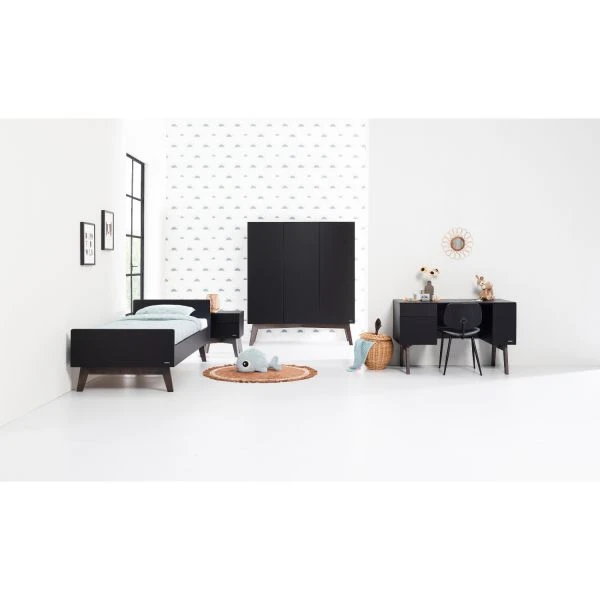 Kidsmill Sixties Kinderkamer Zwart Mat / Walnoot | Bed 90 x 200 cm + Bureau