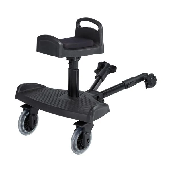 Met dit Kidsriver Universeel Meerijdplankje Met Zitting kan je zonder zorgen op pad met je kindje. Je kan het plankje eenvoudig bevestigen aan de kinderwagen of buggy en het zit niet in de weg tijdens het lopen. Het plankje is ideaal voor mensen die meerdere kinderen hebben, waarvan het ene kind op met meerijdplankje staat en het andere kind in de kinderwagen zit. Wanneer je kindje vermoeid raakt van het lopen, kan hij of zij rustig bijkomen op het meerijdplankje met zitje. Zo kan je langere stukken afleggen met de kinderwagen. Als je kindje liever op het plankje staat, dan verwijder je gemakkelijk het zitje.