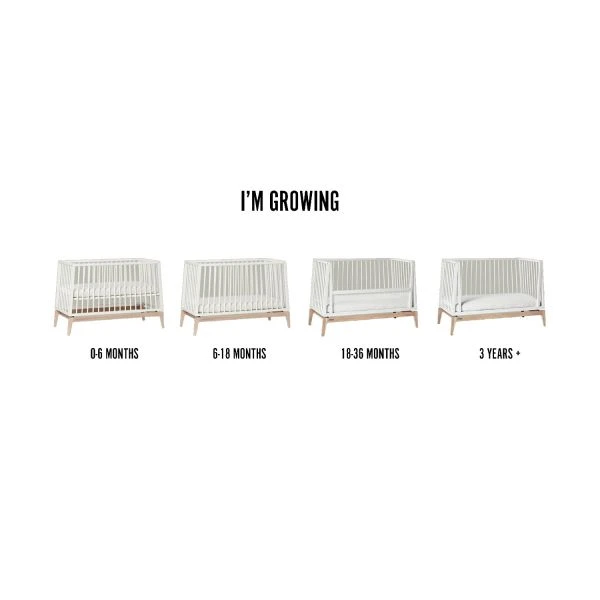 Eenvoudig en licht. Deze twee woorden zijn de gedachten achter het Leander Luna Babybed White / Oak. Dit babybed kan met de los verkrijgbare accessoires worden omgebouwd en in verschillende opstellingen worden geplaatst. Hierdoor groeit het bedje met je kindje mee en heb je er extra lang plezier van. Zo is de bodem te verstellen in 2 standen waarmee je je kindje de eerste maanden nog gemakkelijk uit het bedje kunt tillen. Wanneer je kindje ouder wordt kan de bodem worden verlaagd. Om het bedje uit te breiden zijn het bedhek en sofa-front los verkrijgbaar. Verder is de vormgeving van dit babybed zeer strak en past bij iedere type stijl kamer. Later dit jaar zal een praktische ombouwset voor het Leander Luna™ babybed op de markt komen. De nieuwe module is los verkrijgbaar en maakt het mogelijk om het babybed eenvoudig om te bouwen tot een kleine bank of tot een junior bed met of zonder bedhek. Let op: Het is niet mogelijk om het bed als een open bed of als een bank te gebruiken zonder de ombouwset, omdat deze voor stabiliteit zorgt.