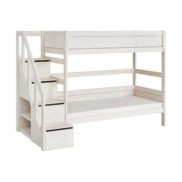 De LIFETIME Kidsrooms Stapelbed Met Trapkast Whitewash is een kwalitatief grenen stapelbed met een trapkast ernaast. Door deze kast kan je eenvoudig op het bovenste bed van het stapelbed komen. Ook beschikt deze trap over verschillende soorten opbergruimte. Zo is er onder iedere trede ruimte om spullen op te bergen en aan de zijkant bevinden er ook nog opbergvakken waar spullen in neergelegd kunnen worden. Kortom een praktisch stapelbed wat er ook nog erg leuk uit ziet!