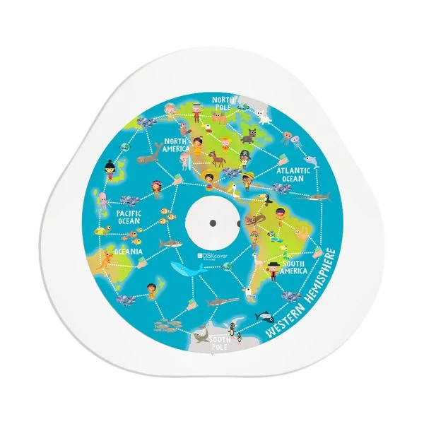 De Stokke® MUtable™ DISKcover We Are The World is een speelbord die je eenvoudig in de Stokke® MUtable™ speeltafel bevestigd. De dubbelzijdige borden zijn voorzien van grappige en leerzame thema’s waarmee de fantasie van je kindje tot leven komt. Door met de speelborden te spelen leert je kindje op een speelse manier kennis maken met cijfers, letters en nog veel meer. De speelborden zijn leuk om samen met familie of vriendjes en vriendinnetjes te ontdekken, maar je kindje kan de spellen ook zelfstandig ontdekken. Verder is het speelbord gemaakt van hard karton en is los of samen met de MUapp te gebruiken.
