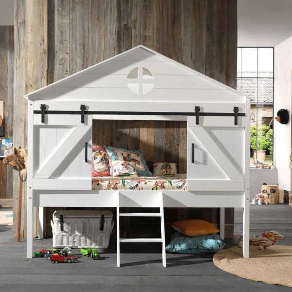 De Vipack Barnie Halfhoogslaper is een leuk bed met deuren die niet dicht kunnen. Een leuk bed waar heerlijk in geslapen kan worden maar wat ook een leuke speelhut is. Het is een praktisch meubel voor verschillende activiteiten. Door middel van een trap met twee treden kan er eenvoudig in het bed geklommen worden. Het is vervaardigd van kwalitatief grenenhout in combinatie met MDF en heeft een afwerking van stootbestendige lak.