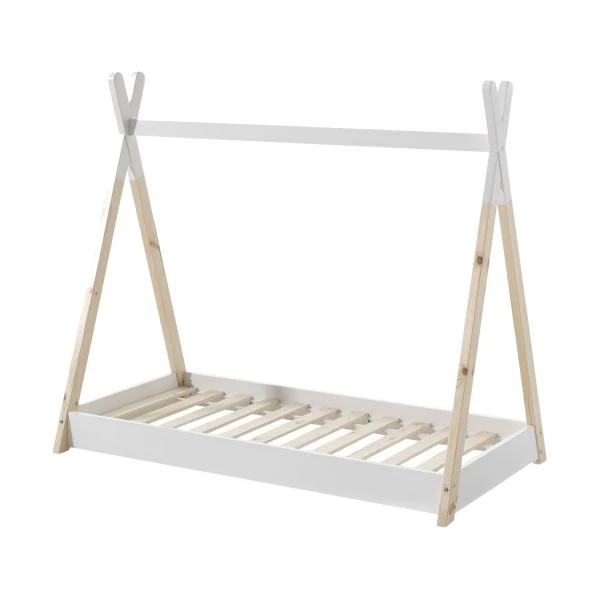Het Vipack Tipi Peuterbed Wit 70 x 140 cm is een kwalitatief bed wat net 8 cm boven de vloer bevind. Hierdoor is er genoeg ventilatie. Het frame wat aan het bed bevestigd is maakt het dit tipi design. Het is gemaakt van grenenhout en heeft een combinatie van wit en naturel. Bovenin het frame kunnen er verschillende dingen gehangen worden.